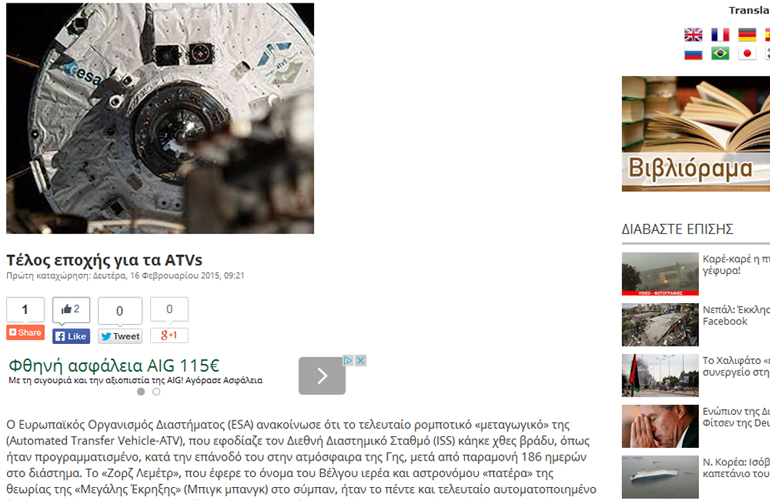 Με επιτυχία ολοκληρώθηκε την Κυριακή η εκτόξευση δύο τηλεπικοινωνιακών δορυφόρων από το Διαστημικό Κέντρο της Γαλλικής Γουιάνας κοντά στην πόλη Κουρού.
