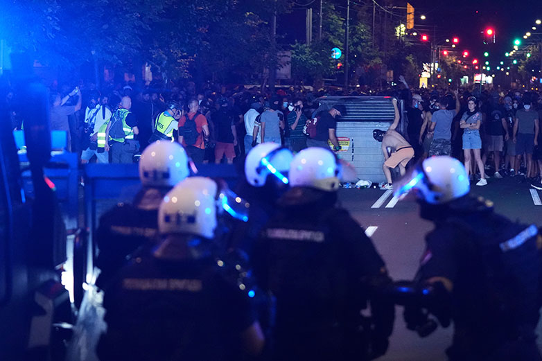 Βίαια επεισόδια ξέσπασαν για άλλη μια νύχτα στο Βελιγράδι, όταν αντικυβερνητικοί διαδηλωτές συγκρούστηκαν με υποστηρικτές του κυβερνώντος Σερβικού Προοδευτικού Κόμματος (SNS) και ακολούθησε επέμβαση των δυνάμεων της αστυνομίας.