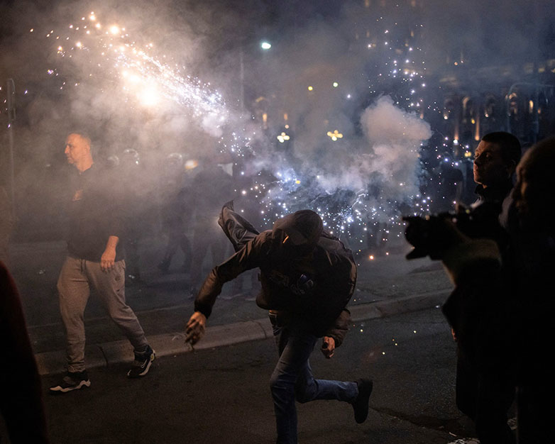 Υποστηρικτές της κυβέρνησης πετούν βεγγαλικά και πέτρες στους διαδηλωτές