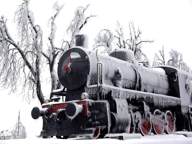 Η σιδηροδρομική γραμμή που συνδέει την Ποστόινα με το λιμάνι Κόπερ στη Αδριατική έχει διακοπεί εξαιτίας των δέντρων που έχουν πέσει από το βάρος του χιονιού και του πάγου.