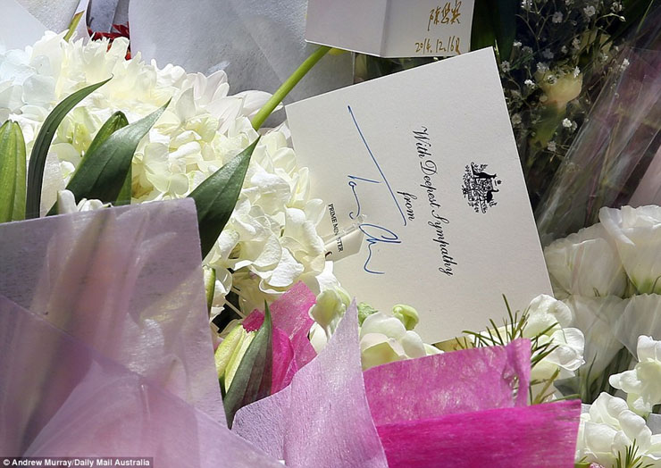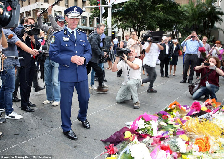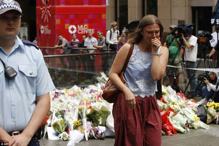 Στην περιοχή Martin Place, λουλούδια έχουν κατακλύσει τους δρόμους και οι πολίτες θρηνούν για τον χαμό δύο ανθρώπων, που έχασαν τη ζωή τους κατά τη διάρκεια ομηρίας εντός της καφετέριας Lindt.