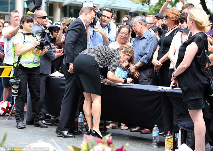 Στο Martin Place μετέβη και ο πρωθυπουργός Τόνυ Άμποτ με τη σύζυγό του.