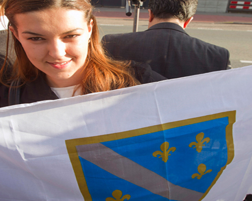 «Όταν θα φτάσει και δει τις σημαίες που κρατάμε , ελπίζω ότι θα κοκκινίσει από ντροπή», δήλωσε ο 24χρονος Ολλανδός -βοσνιακής καταγωγής- Nikita Teodorovic, που κράδαινε την μπλε-κίντρινη-λευκή σημαία της Βοσνίας-Ερζεγοβίνης.