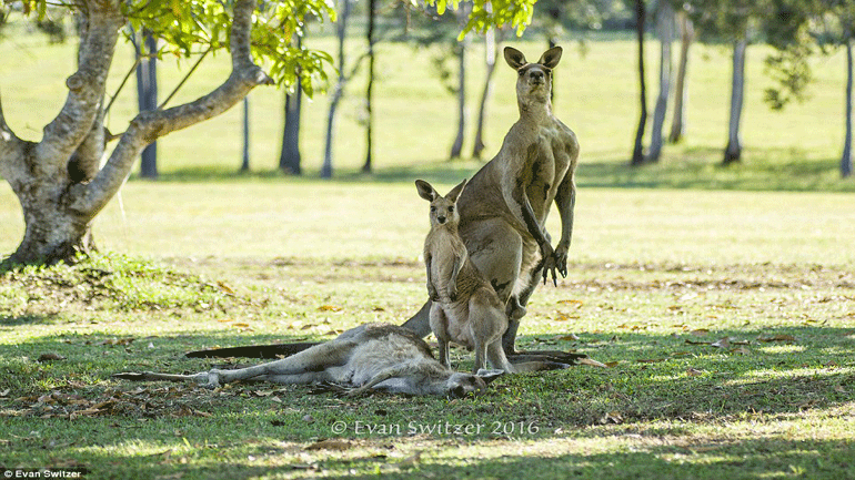 Οι σπαρακτικές τελευταίες στιγμές αιχμαλωτίστηκαν από τον φωτογράφο Evan Switzer, ο οποίος δήλωσε ότι δεν είχε «δει ποτέ κάτι παρόμοιο» κατά τη διάρκεια των καθημερινών περιπάτων του στην περιοχή τα τελευταία 10 χρόνια. Ο Switzer είπε ότι το προστατευτικό αρσενικό κυνηγούσε κάθε καγκουρό που ερχόταν πολύ κοντά, όσο το θηλυκό ξεψυχούσε.