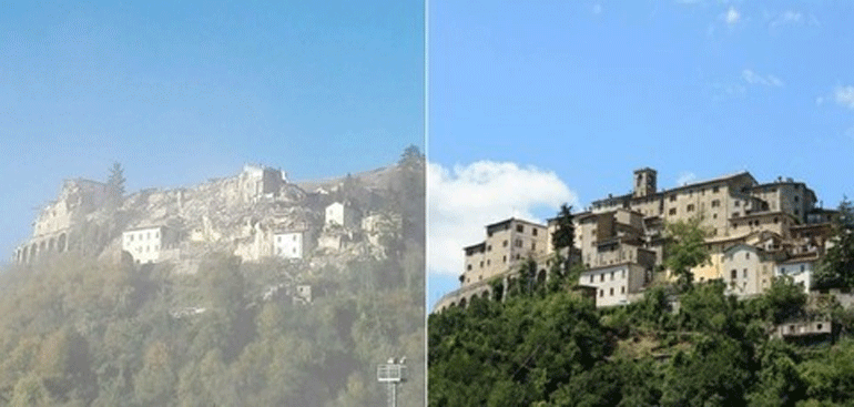 Δραματικές είναι οι εικόνες από ένα τεράστιο σωρό από μπάζα που έχει πάρει τη θέση του μεσαιωνικού χωριού Arquata del Tronto, της επαρχίας Ascoli Piceno στο MarcheΗ δόνηση, που σύμφωνα με τους σεισμολόγους ήταν επιφανειακή και είχε μεγάλη διάρκεια, επηρέασε περιοχές που έχουν ήδη πληγεί από τον φονικό σεισμό μεγέθους 6,2 Ρίχτερ στις 24 Αυγούστου.