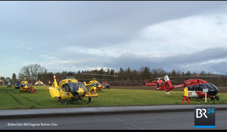 Παράλληλα, η «Nordbauyerischer Kurier» μεταδίδει ότι οκτώ ελικόπτερα που μετέφεραν διασώστες προσγειώθηκαν επί τόπου για την παροχή των πρώτων βοηθειών.