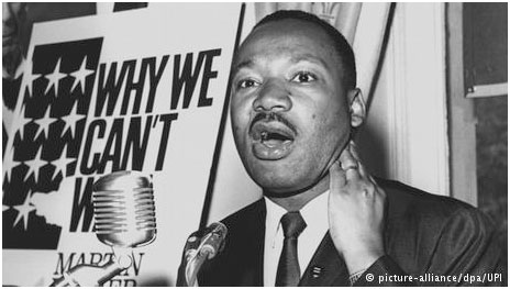 Το σύμβολο της ειρήνης γρήγορα διαδόθηκε στην αντίπερα όχθη του Ατλαντικού, τις ΗΠΑ. Κυρίως χάρη στον Μπάγιαρντ Ράστιν, στενό συνεργάτη του Μάρτιν Λούθερ Κινγκ. Ο Μάρτιν Λούθερ Κινγκ ύψωσε τη σημαία με το σύμβολο της ειρήνης μπροστά από το Αμερικανικό Κονγκρέσο, όταν τον Ιούνιο του 1964 ενέκρινε τον μνημειώδη Νόμο για τα Πολιτικά Δικαιώματα (Civil Rights Bill).