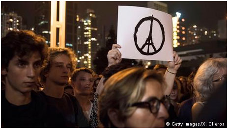 Το σήμα της ειρήνης χρησιμοποιήθηκε κατά κόρον τα τελευταία χρόνια στις μεγάλες διαδηλώσεις κατά της τρομοκρατίας σε πολλές ευρωπαϊκές πρωτεύουσες. Το 2015 μετά τις τρομοκρατικές επιθέσεις τζιχαντιστών στο Παρίσι ο γάλλος γραφίστας Ζαν Ζυλιέν σχεδίασε μια παραλλαγή του σήματος της ειρήνης με τον Πύργο του Άιφελ.