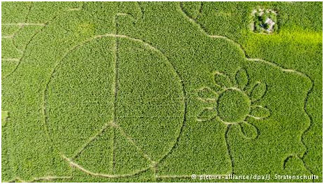 Με αφορμή τη Σύνοδο G20 στο Αμβούργο τον Ιούλιο του 2017, Γερμανός αγρότης στην Κάτω Σαξονία έφτιαξε αυτό το εντυπωσιακό σήμα της ειρήνης σε χωράφι του, στέλνοντας το δικό του μήνυμα προς τους πολιτικούς ηγέτες. Ενδιαφέρον έχει ότι το σήμα της ειρήνης δεν συνοδεύεται από πνευματικά δικαιώματα επειδή ουδέποτε τα διεκδίκησε ο εμπνευστής τους. Για αυτό και μπορεί να χρησιμοποιείται από τον καθένα!