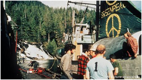 Toν Σεπτέμβριο του 1971 ομάδα Καναδών ακτιβιστών έφτασε στην Αλάσκα με ένα πλοιάριο ονόματι «Greenpeace» με στόχο να τραβήξει τη παγκόσμια προσοχή για τις πυρηνικές δοκιμές των ΗΠΑ στην περιοχή. Η μικρή αυτή ομάδα που έμελλε να γίνει μια από τις σημαντικότερες διεθνείς περιβαλλοντικές οργανώσεις έκανε το ντεμπούτο της με έμβλημα το σήμα της ειρήνης.