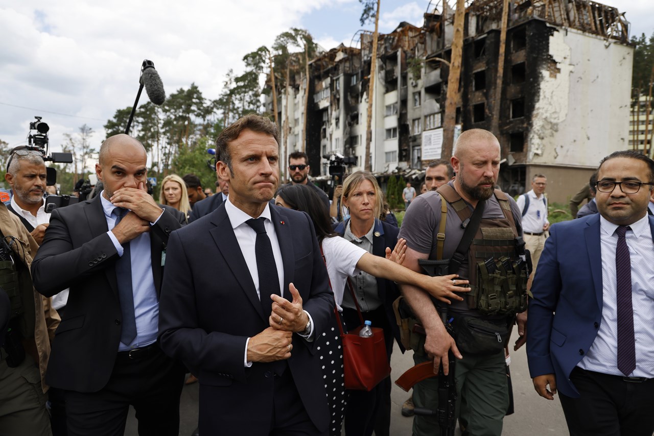 «Είναι μια ηρωική πόλη, σημαδεμένη από τα στίγματα της βαρβαρότητας», δήλωσε ο Μακρόν προς τους δημοσιογράφους. «Είδαμε όλοι αυτές τις εικόνες μιας πόλης κατεστραμμένης, που είναι ταυτόχρονα μια πόλη ηρωική αφού εδώ ήταν, μεταξύ άλλων, που οι Ουκρανοί σταμάτησαν το ρωσικό στρατό που κατέβαινε προς το Κίεβο. Συνεπώς αντιπροσωπεύει τον ηρωισμό του στρατού, αλλά επίσης του ουκρανικού πληθυσμού», πρόσθεσε.