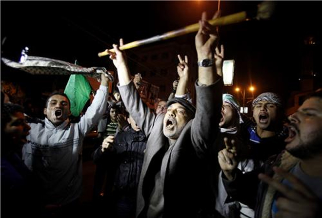 (Οι Παλαιστίνιοι πανηγυρίζουν την εκεχειρία)