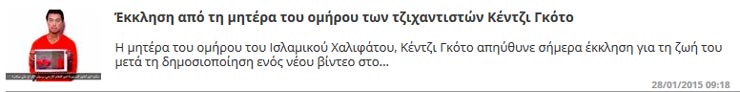 Η μητέρα του ομήρου, Κέντζι Γκότο απηύθυνε νωρίτερα έκκληση για τη ζωή του μετά τη δημοσιοποίηση ενός νέου βίντεο στο οποίο ο Ιάπωνας δημοσιογράφος έλεγε πως τού απομένουν 24 ώρες ζωής, αν η Ιορδανία δεν απελευθερώσει μια επίδοξη καμικάζι.