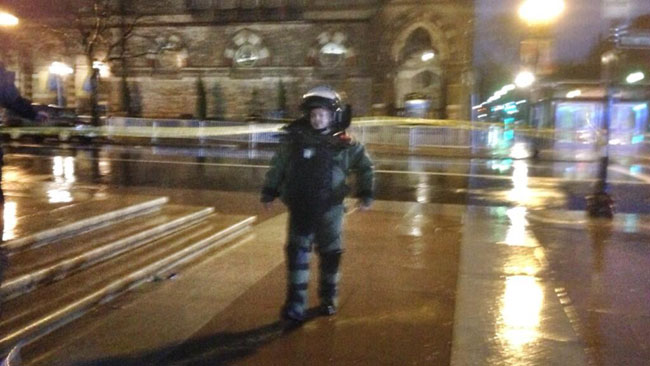 Οι αρχές, αφού εξέτασαν τα σακίδια με ειδικά ρομπότ, τελευταίας τεχνολογίας, προχώρησαν σε ελεγχόμενες εκρήξεις. Όπως διαπιστώθηκε τα σακίδια δεν έφεραν εκρηκτικά.