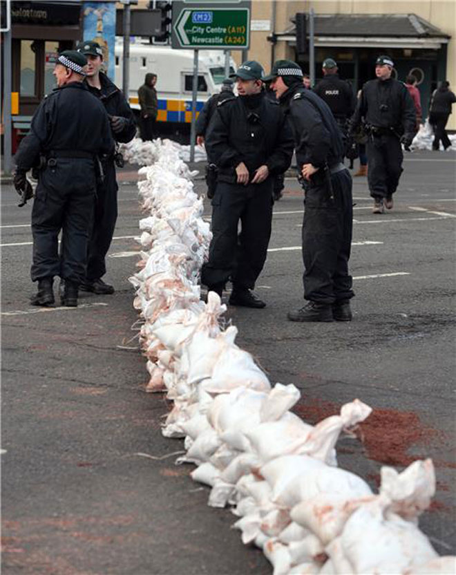 Παράλληλα, στην Ιρλανδία τα συνεργεία επιχειρούν να στήσουν πρόχειρα φράγματα για να σταματήσουν τα νερά.