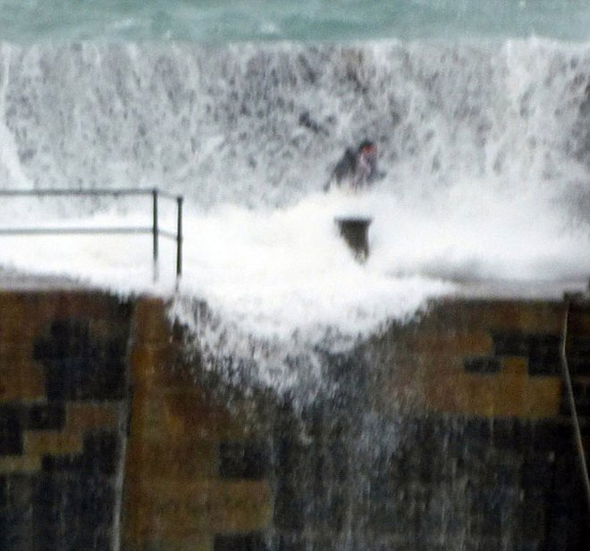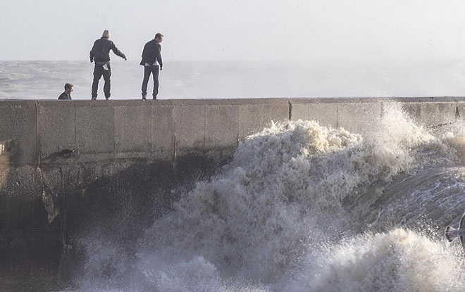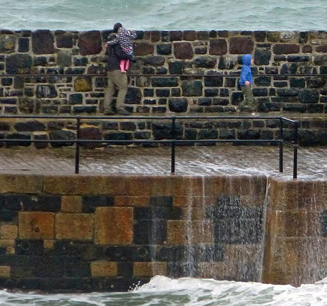 Παρ’ όλ’ αυτά και παρά τις προειδοποιήσεις των τοπικών Αρχών, πολλοί είναι εκείνοι που αψήφησαν τον κίνδυνο και περπάτησαν κατά μήκος των ακτών θαυμάζοντας τα τρομακτικά κύματα. Την παράτολμη απόφαση πήρε και μία τετραμελής οικογένεια στην Κορνουάλη, την οποία «κατάπιε» ένα τεράστιο κύμα, ευτυχώς χωρίς να τραυματιστούν οι γονείς και τα δύο μικρά παιδιά.