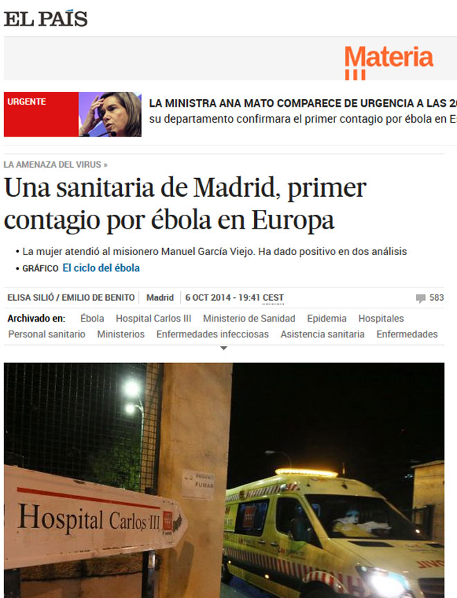 Η εφημερίδα Ελ Παΐς και ο ραδιοφωνικός σταθμός Καδένα Σερ ήταν μεταξύ των μέσων που μετέδωσαν ότι οι πρώτες εξετάσεις στις οποίες υποβλήθηκε η νοσοκόμα βγήκαν θετικές. Οι αρχές αναμένουν τώρα να επιβεβαιώσουν τα αποτελέσματα αυτά.