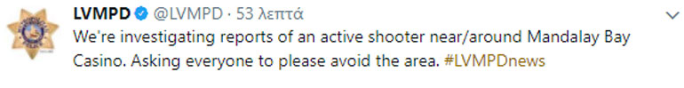 «Παρακαλούνται οι πολίτες να αποφύγουν την περιοχή» έγραψε στο Twitter η αστυνομία του Λας Βέγκας.