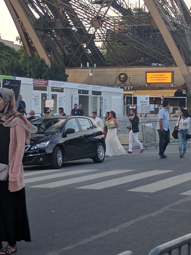Χρήστες του Twitter ανέβασαν μεγάλο αριθμό φωτογραφιών στο Twitter από το σημείο, σε μία εκ των  οποίων φαίνονται να φεύγουν άρον – άρον νύφη και γαμπρός που πήγαιναν να φωτογραφηθούν, όπως πολλά νιόπαντρα ζευγάρια συνηθίζουν, στο διάσημο αξιοθέατο του Παρισιού.