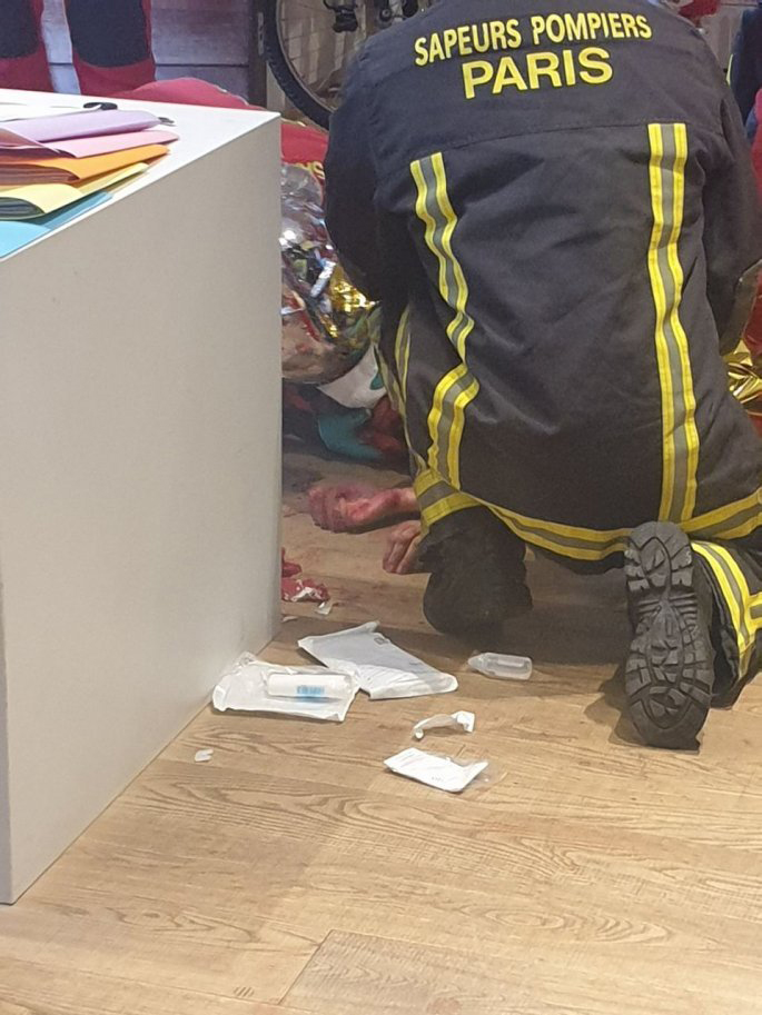 Υπάλληλος της Premières Lignes, πρακτορείου Τύπου και εταιρείας παραγωγής, διηγήθηκε ότι δύο συνάδελφοί της βρίσκονταν στον δρόμο μπροστά από τα γραφεία της εταιρείας και κάπνιζαν, όταν άκουσε ουρλιαχτά. Πλησίασε στο παράθυρο και είδε τον έναν από τους συναδέλφους της μέσα στο αίμα να καταδιώκεται από έναν άνδρα που κρατούσε ματσέτα. Τα γραφεία της εταιρείας είναι στον δρόμο όπου βρίσκονταν τα γραφεία του Charlie Hebdo. Έκτοτε, τα γραφεία του σατιρικού εντύπου στεγάζονται σε μυστικό τόπο.