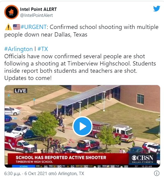 Όπως μεταδίδουν ξένα ειδησεογραφικά δίκτυα, το σχολικό συγκρότημα τέθηκε σε lockdown ενώ μαθητές και προσωπικό φέρεται να είναι κλειδωμένοιστις αίθουσες και τα γραφεία τους.