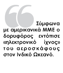 Νέα τροπή στο θρίλερ με την εξαφάνιση του Boeing 777 της Malaysia Airlines φέρνει ένα ηλεκτρονικό στίγμα από δορυφόρο. Αν και επικρατεί μεγάλη σύγχυση, τα αμερικανικά ΜΜΕ υποστηρίζουν ότι ο δορυφόρος εντόπισε «ηλεκτρονικό ίχνος» του αεροσκάφους στον Ινδικό Ωκεανό.