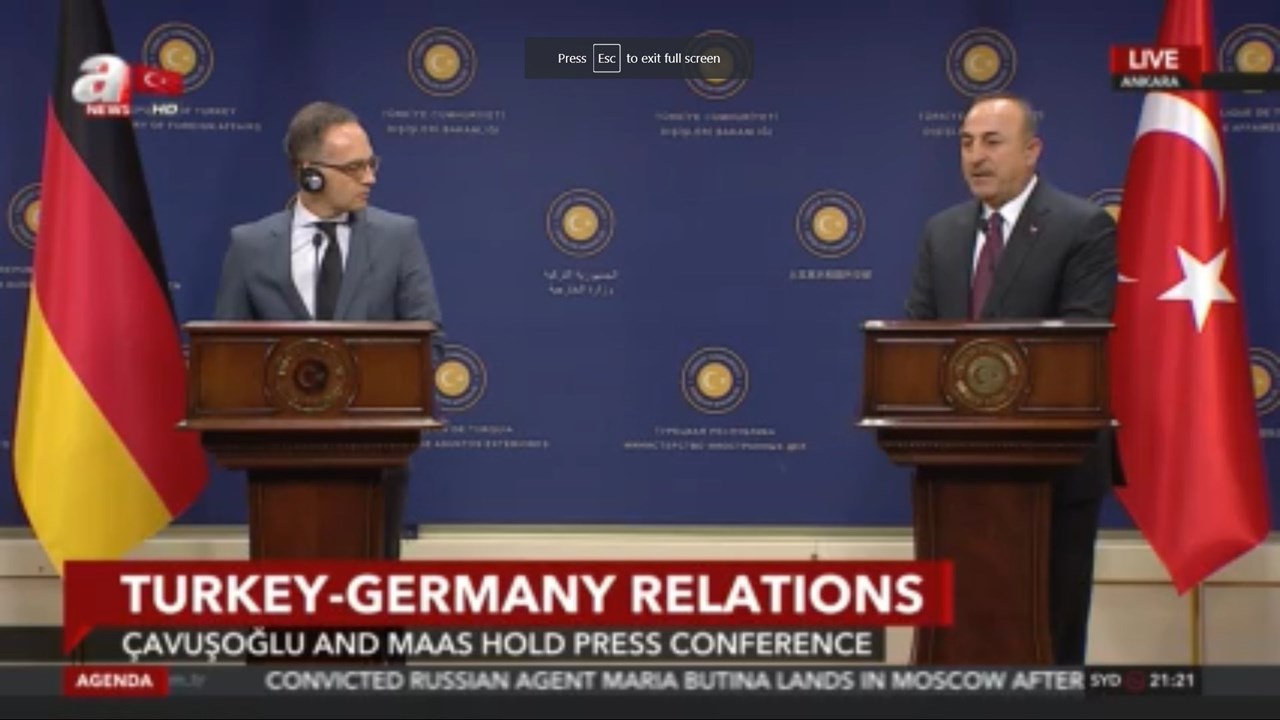 Ο υπουργός Εξωτερικών της Τουρκίας Μεβλούτ Τσαβούσογλου και ο Γερμανός ομόλογός του Χάικο Μάας διεξήγαγαν συνομιλίες στην Άγκυρα το Σάββατο σχετικά με την επιχείρηση της Τουρκίας στη βόρεια Συρία.