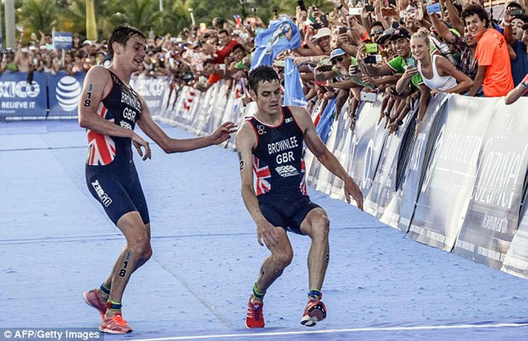 Πιο συγκεκριμένα ο αθλητής Τζόναθαν Μπράουνλι 700 μέτρα πριν το τερματισμό, και ενώ βρισκόταν σε τροχιά μεταλλίου, άρχισε να χάνει τις αισθήσεις του. Αμέσως προσέτρεξε σε βοήθειά, ο αδερφός του Άλιστερ, που επίσης είναι πρωταθλητής τριάθλου και συμμετείχε στον συγκεκριμένο αγώνα.