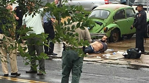 Επίσης ένα βίντεο που δημοσίευσε το CNN δείχνει τον ύποπτο να μεταφέρεται στο νοσοκομείο, τραυματισμένος.