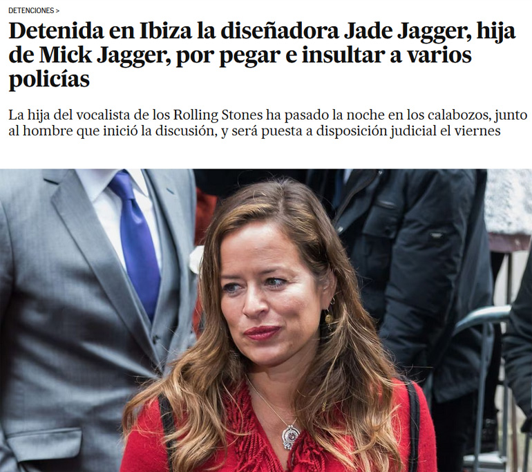 Ο άνδρας που συνόδευε την Τζέιντ Τζάγκερ έγινε επιθετικός απέναντι στους σερβιτόρους και το ζεύγος εκδιώχθηκε από το εστιατόριο. Καθώς εκείνος συνέχιζε να εκτοξεύει ύβρεις από τον δρόμο, κλήθηκε η αστυνομία. Όταν έφτασαν οι αστυνομικοί, ο άνδρας αντιστάθηκε ενώ η Τζάγκερ τους επιτέθηκε, με γρατζουνιές και γροθιές. Θα οδηγηθεί ενώπιον δικαστηρίου σήμερα Παρασκευή, σύμφωνα πάντα με την ισπανική εφημερίδα.