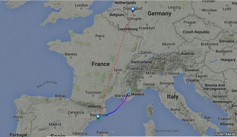Είχε απογειωθεί από την πρωτεύουσα της Καταλονίας στις 10.55 το πρωί, ώρα Ελλάδας και στις 11.47 εξέπεμψε σήμα κινδύνου. Εμπειρογνώμονες αφήνουν ανοικτό το ενδεχόμενο η συντριβή να οφείλεται σε τεχνικό λάθος. Πληροφορίες αναφέρουν ότι υπήρξε κάθετη πτώση του αεροσκάφους από ύψος 3.500 ποδιών.
