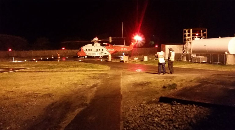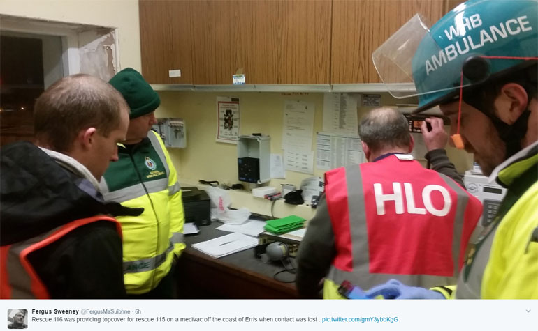 Το ελικόπτερο χάθηκε ανοικτά της δυτικής ακτής της Δημοκρατίας της Ιρλανδίας και οι έρευνες από ελικόπτερα και τοπικά αλιευτικά είναι σε εξέλιξη περίπου έξι μίλια δυτικά της Βlack Sod στην κομητεία Mayo.