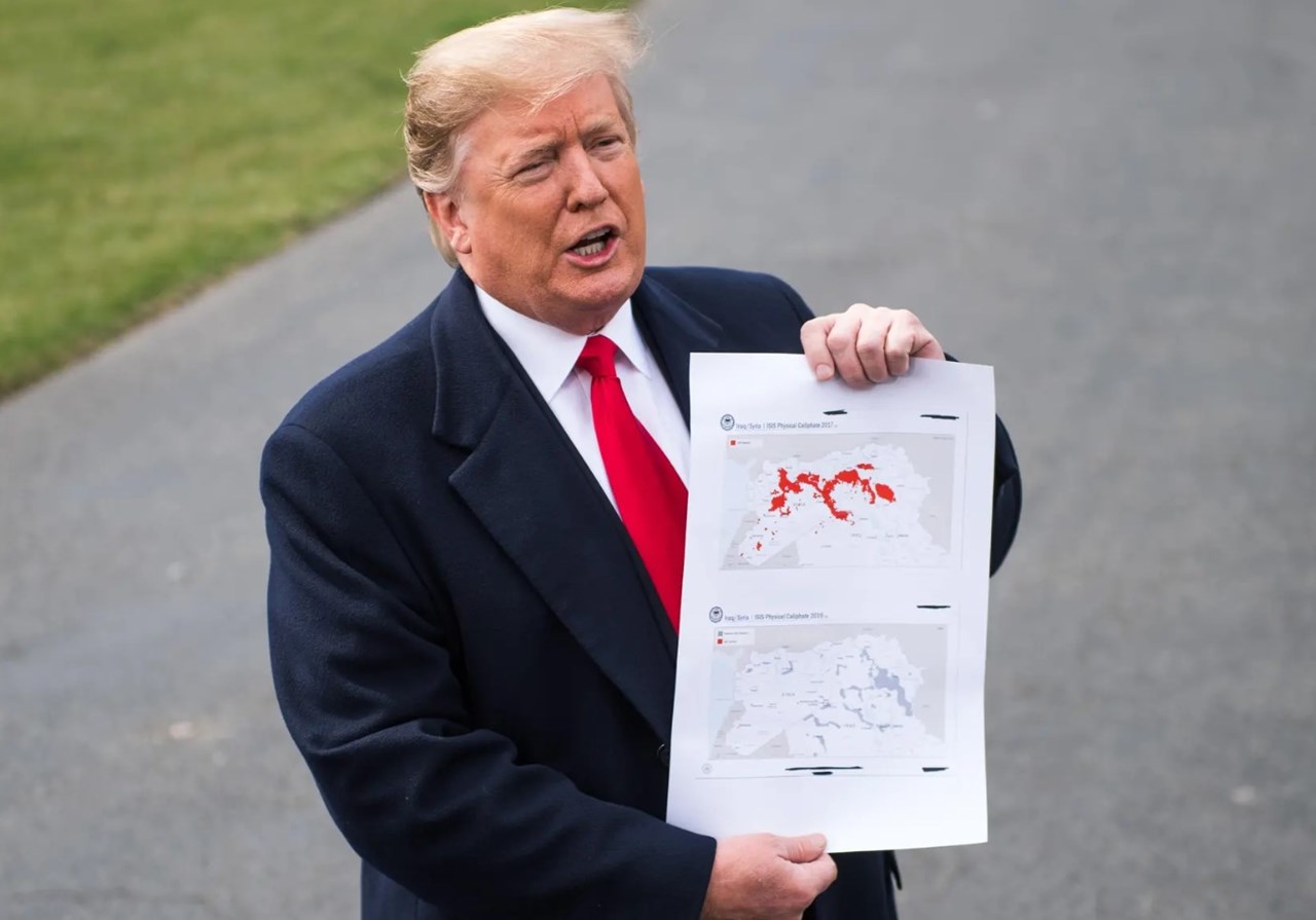 Από την πλευρά του ο πρόεδρος των ΗΠΑ Ντόναλντ Τραμπ παρουσίασε στους δημοσιογράφους χάρτες με τα εδάφη, που κάποτε είχαν υπό τον έλεγχό τους οι τζιχαντιστές.