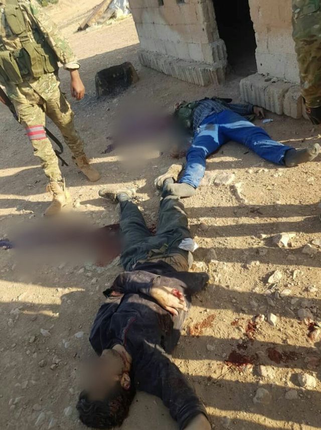 Μισθοφόροι της Τουρκίας εκτέλεσαν τέσσερις Κούρδους, πλήρωμα ασθενοφόρου του κουρδικού Ερυθρού Σταυρού, (Ερυθρά Ημισέληνος – Heyva Sor a Kurd) σκύλευσαν τα πτώματά τους και απαθανάτισαν σε βίντεο και φωτογραφίες τα εγκλήματά τους φωνάζοντας συνθήματα της οργάνωσης Ισλαμικό Κράτος. «Αλλαχού Ακμπάρ».