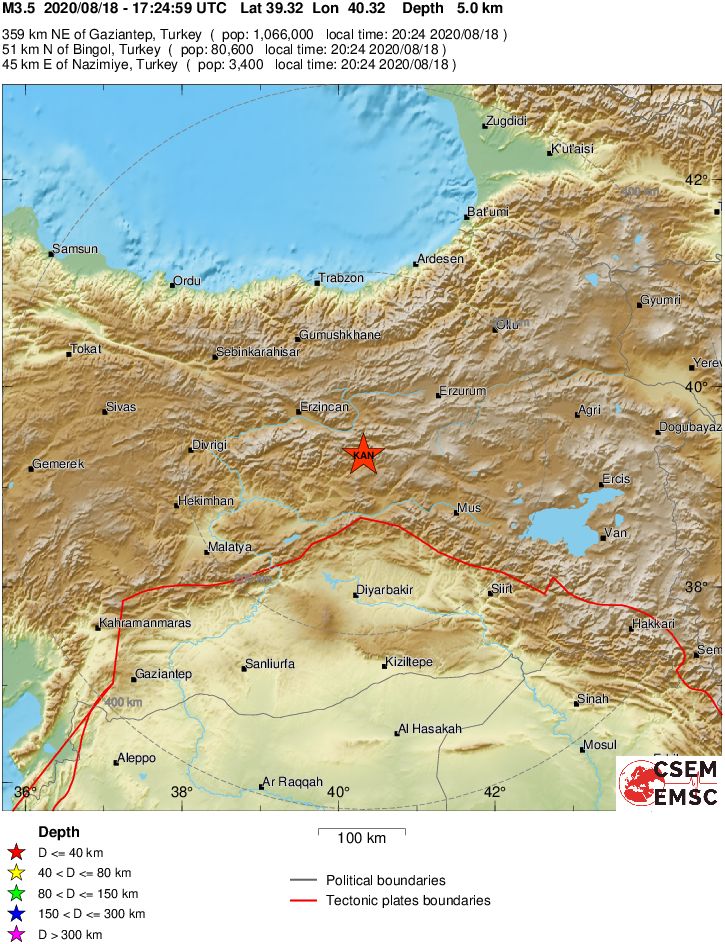 Σεισμική δόνηση μεγέθους 3,5 βαθμών της κλίμακας Ρίχτερ σημειώθηκε στην Ανατολική Τουρκία σύμφωνα με το Ευρωμεσογειακό Ινστιτούτο.