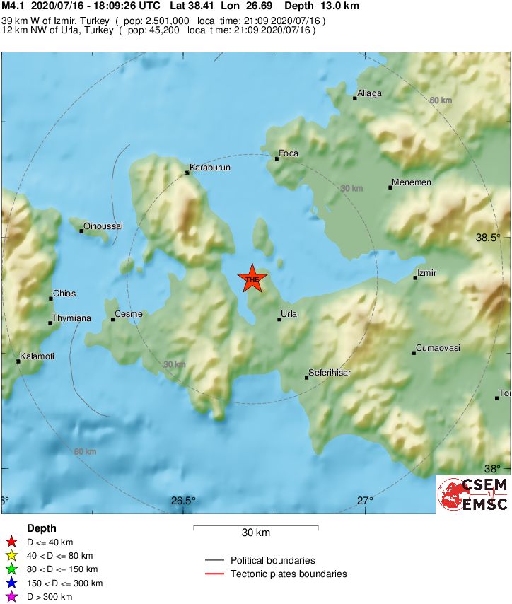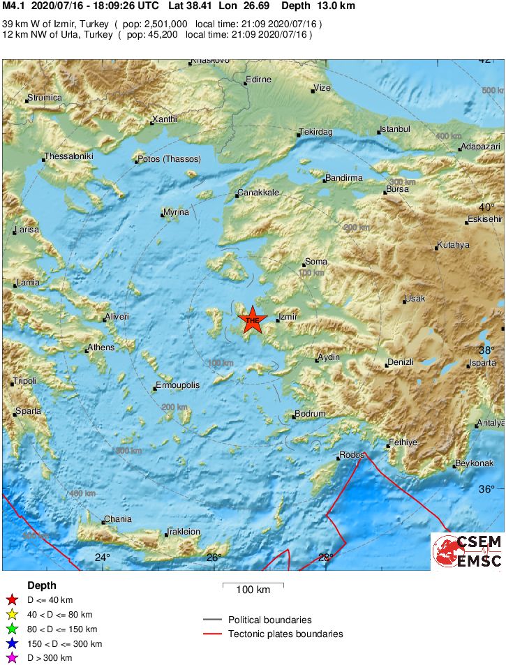 Έντονα αισθητός στη Χίο και ιδιαίτερα στη Λέσβο έγινε ο σεισμός έντασης 4,2 βαθμών της κλίμακας Ρίχτερ στην περιοχή της χερσονήσου της Ερυθραίας κοντά στη Σμύρνη.