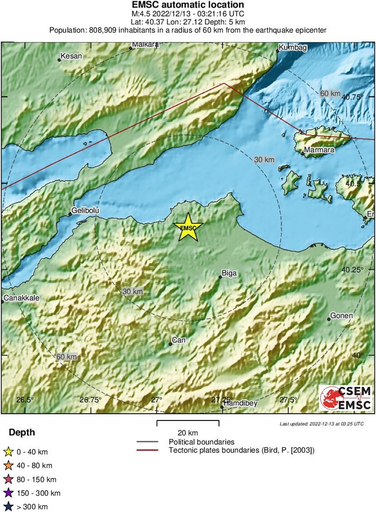 Σύμφωνα με αναφορές, η σεισμική δόνηση έγινε αισθητή σε περιοχές του Έβρου και σε νησιά του Βορείου Αιγαίου.