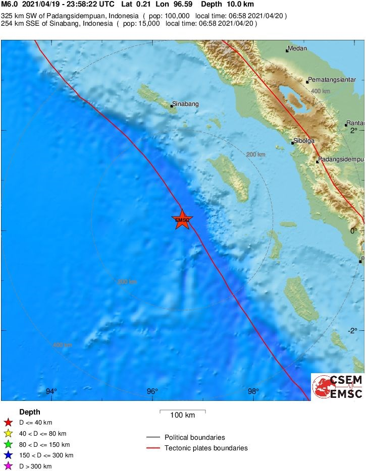 Σύμφωνα με τις μετρήσεις του Ευρωπαϊκού Μεσογειακού Σεισμολογικού Κέντρου (EMSC), το επίκεντρο της σεισμικής δόνησης εντοπίζεται 254 χιλ. νότια-νοτιοανατολικά της πόλης Σιναμπούνγκ, ενώ το εστιακό του βάθος ήταν στα 10 χλμ.