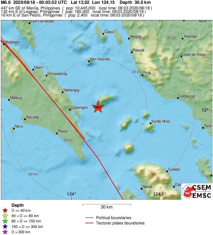 Το Ευρωμεσογειακό Σεισμολογικό Κέντρο (EMSC) από τη δική του πλευρά εκτίμησε ότι ο σεισμός είχε μέγεθος 6,6 βαθμών και έγινε σε βάθος 30 χιλιομέτρων.