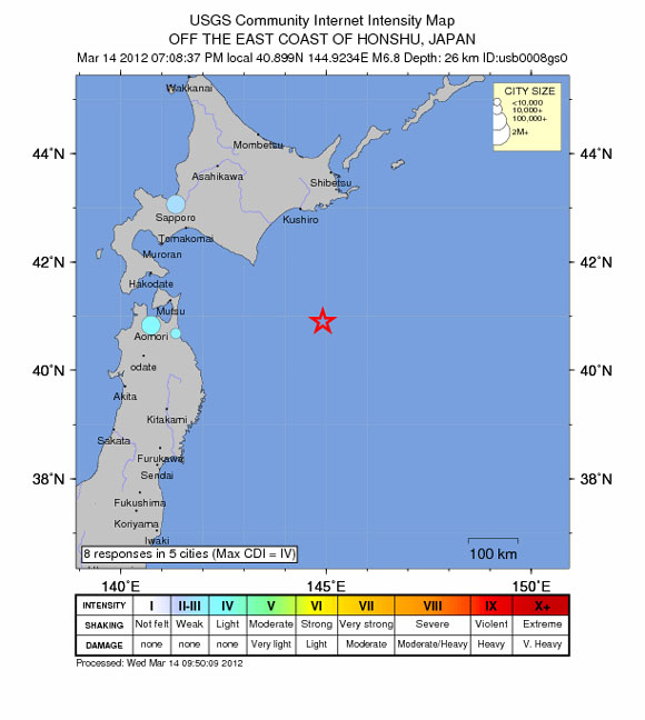 Μια προειδοποίηση για τσουνάμι με μέγιστο ύψος 50 εκατοστά είχε εκδοθεί προηγουμένως από την ιαπωνική Μετεωρολογική Υπηρεσία στις επαρχίες Αομόρι, Ιουάτε (Βορειοανατολική Ιαπωνία) και Χοκάιντο.