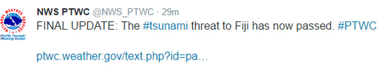 Ωστόσο, όπως έγινε γνωστό, δεν υφίσταται πλέον κίνδυνος για τσουνάμι