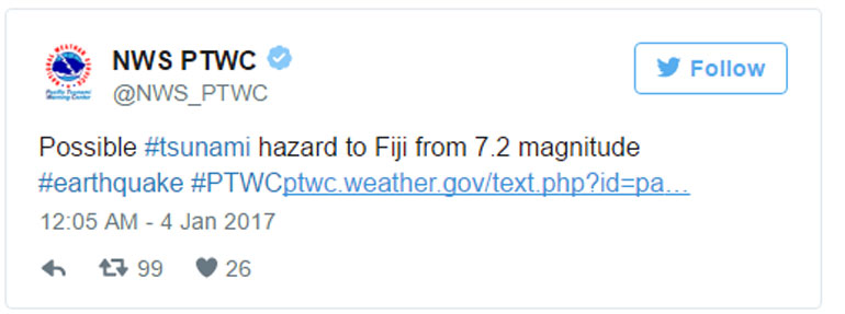 Ο σεισμός που αρχικά υπολογίστηκε στα 7,2 Ρίχτερ είχε επίκεντρο 221 χιλιόμετρα νοτιοδυτικά της περιοχής Νάντι, ενώ το εστιακό του βάθος υπολογίστηκε στα 15,2 χλμ., σύμφωνα με το USGS.