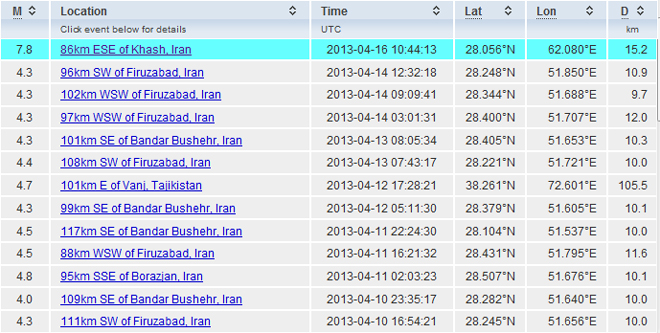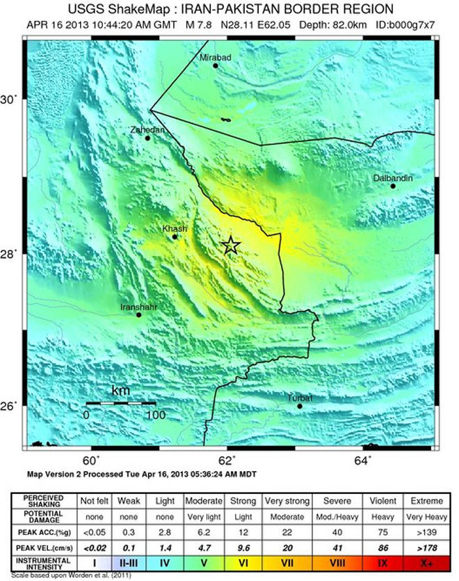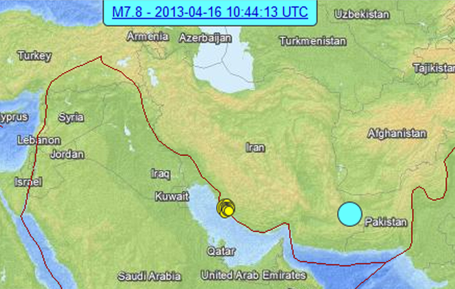 Σεισμική δόνηση μεγέθους 7,8 βαθμών της κλίμακας Ρίχτερ σημειώθηκε στις 13.44 (ώρα Ελλάδος) στο Ιράν. Σύμφωνα με το Αμερικανικό Γεωφυσικό Ινστιτούτο, το επίκεντρο του σεισμού εντοπίζεται στα σύνορα του Ιράν με το Πακιστάν (86 χλμ. από την πόλη Khash) και το εστιακό του βάθος ορίζεται στα 100 χιλιόμετρα.