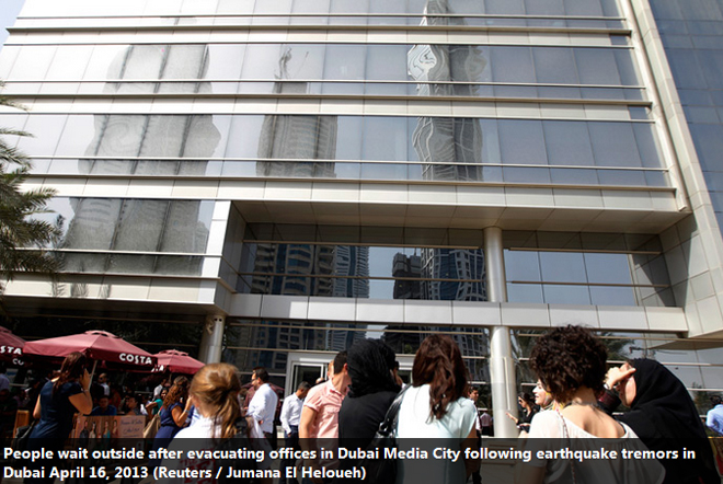 Μετά τον σεισμό εκκενώθηκαν κτίρια που φιλοξενούν εταιρείες στο οικονομικό κέντρο του Ντουμπάι και στο Media City, όπως και από τις πολυκατοικίες μπροστά από την θάλασσα.