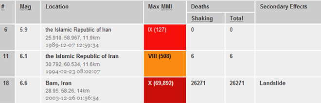 Ο πιο καταστροφικός σεισμός που έχει πλήξει ποτέ το Ιράν σημειώθηκε τον Ιούνιο του 1990 και είχε μέγεθος 7,7 βαθμούς της κλίμακας Ρίχτερ. Περίπου 37.000 άνθρωποι είχαν χάσει τη ζωή τους και περισσότεροι από 100.000 είχαν τραυματιστεί σε έναν σεισμό που ισοπέδωσε δεκάδες πόλεις και περίπου 1.870 χωριά.