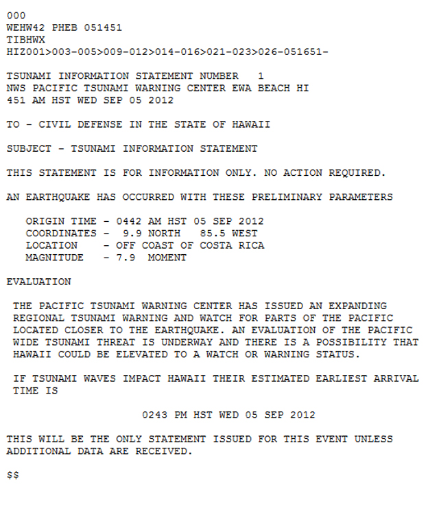Yπάρχει προειδοποίηση για μικρής κλίμακας τσουνάμι (1 στην κλίμακα των 4 βαθμών), στον Ειρηνικό Ωκεανό.