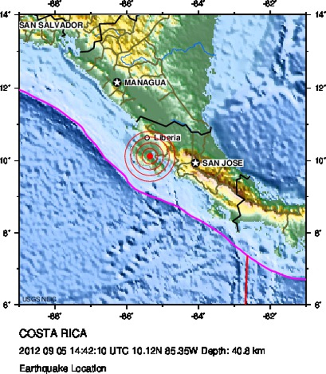 Το επίκεντρο του σεισμού ορίζεται στα 8 χλμ. ανατολικά της Nicoya, ενώ το εστιακό του βάθος ορίζεται στα 48 χλμ.