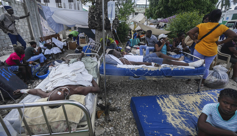Αϊτινοί γιατροί μάχονταν χθες Δευτέρα σε σκηνές που στήθηκαν έξω από νοσοκομεία να σώσουν τη ζωή εκατοντάδων τραυματιών, συμπεριλαμβανομένων παιδιών και ηλικιωμένων, μετά την καταστροφή που προκάλεσε ο σεισμός ο οποίος έπληξε τη χώρα της Καραϊβικής το Σάββατο κι έχει στοιχίσει τη ζωή σε τουλάχιστον 1.419 ανθρώπους, σύμφωνα με τον πιο πρόσφατο απολογισμό που δημοσιοποίησαν οι υπηρεσίες της Πολιτικής Προστασίας χθες βράδυ.