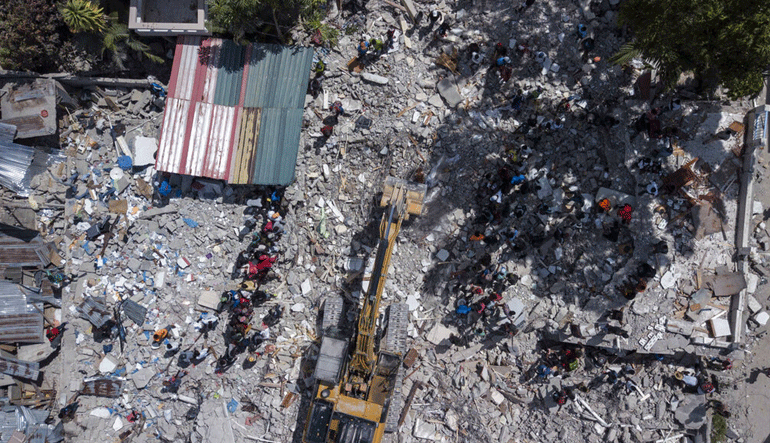Δεκάδες χιλιάδες κτήρια – 37.312, κατά την Πολιτική Προστασία – κατέρρευσαν όταν ο σεισμός χτύπησε τη φτωχότερη χώρα του δυτικού ημισφαιρίου, όπου δεν έχουν καν ακόμη επουλωθεί οι πληγές από τον καταστροφικό σεισμό του 2010. Η καταστροφή προστέθηκε στο σοκ της ανεξιχνίαστης δολοφονίας του προέδρου Ζοβενέλ Μοΐζ την 7η Ιουλίου.