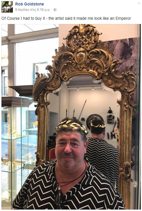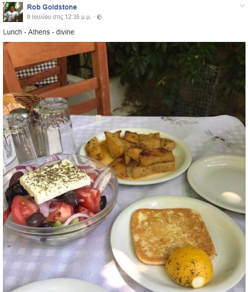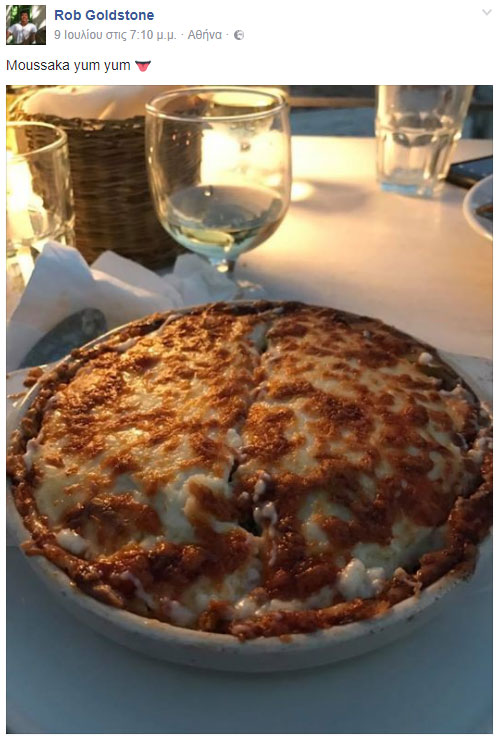 Την ίδια ώρα, φρόντισε να ενημερώσει τους διαδικτυακούς του «φίλους» για τα εδέσματα που δοκίμασε στην ελληνική πρωτεύουσα – μεταξύ των οποίων χωριάτικη σαλάτα, σαγανάκι και μουσακά- και ανάρτησε μια φωτογραφία με ένα χρυσό κότινο, που «έπρεπε οπωσδήποτε» να αγοράσει.